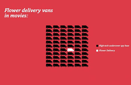 Wouldn't it be a bit obvious is you saw a flower delivery van parked in front of your apartment for days on end? Well, in many movies, that "flower delivery" van is actually a surveillance vehicle. Using a standard van, with a gutted interior and tinted windows might seem a little less obvious.